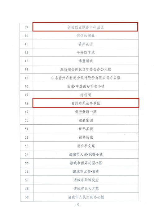 中共濰坊市紀(jì)律檢查委員會(huì)機(jī)關(guān)大樓、峽山創(chuàng)新創(chuàng)業(yè)服務(wù)中心園區(qū)、青州市范公亭景區(qū)、安丘市級(jí)機(jī)關(guān)辦公大樓項(xiàng)目榮獲“2019年全市物業(yè)服務(wù)行業(yè)文明創(chuàng)建示范項(xiàng)目”榮譽(yù)稱號(hào);